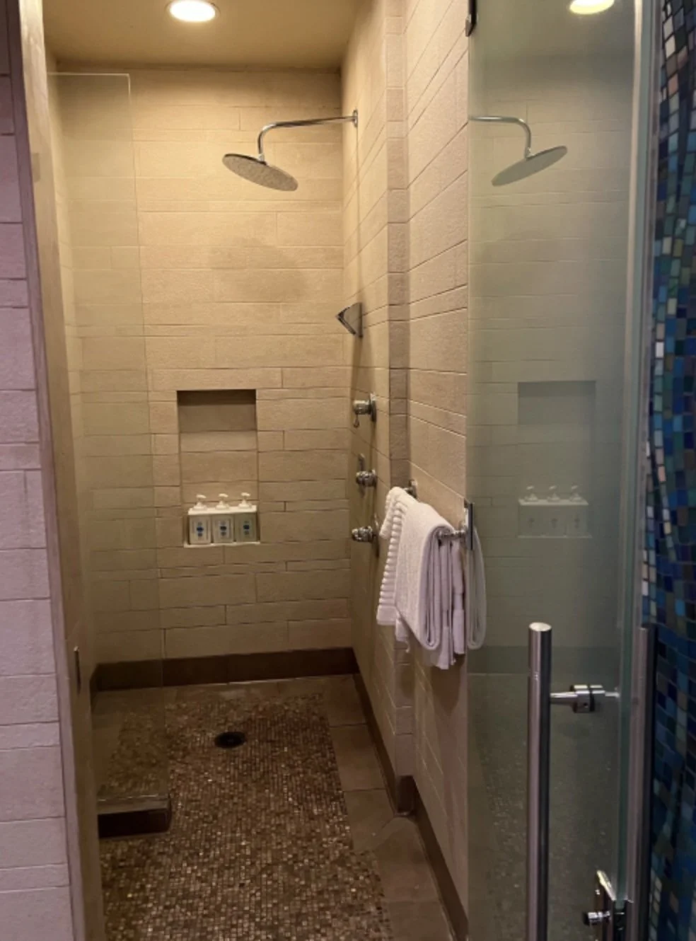 After the massage, I came back into the Men’s Spa and marveled at the amazing ambience surrounding me. There was an Arctic room, a Steam Room, a Sauna, Hot Tubs, Plunge Pools, and a lounge with Chaise Chairs. I walked into the Spa wearing just a robe after my massage, and I wanted to take advantage of all of the amenities made available to me. The catch is, you only have your robe on and nothing else. So, to use one of these pools or tubs, you need to go in naked.